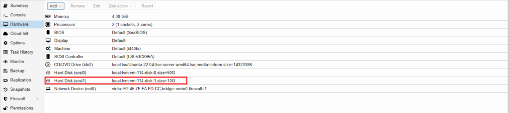 1.1. Thêm ổ đĩa từ Proxmox
