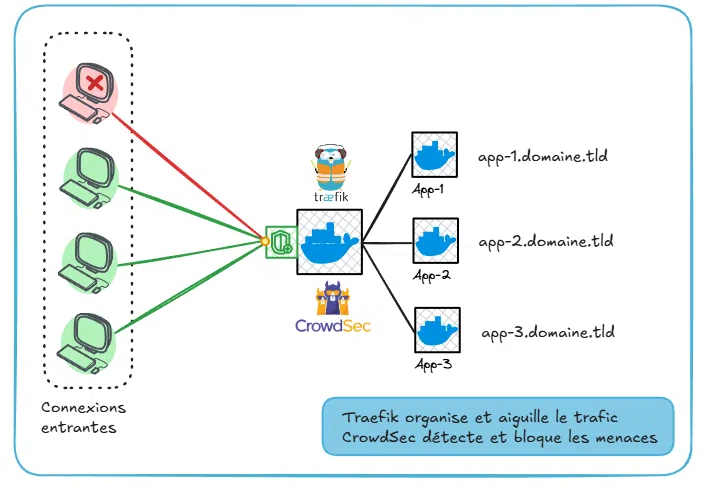 Khi vừa cài đặt một máy chủ Ubuntu mới, việc đầu tiên không phải là cài ứng dụng ngay, mà là gia cố hệ thống. Bài viết này sẽ hướng dẫn bạn xây dựng một pháo đài cho Docker bằng cách sử dụng Traefik làm Reverse Proxy và CrowdSec làm hệ thống phòng thủ chủ động.